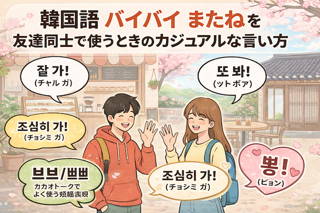 韓国語で「バイバイ」や「またね」にあたる表現は、日本語と同じように相手との関係性やシチュエーションによって使い分けることが大切です。友達同士で使うカジュアルな表現から少し丁寧な言い回しまで、バリエーションは豊富にあります。