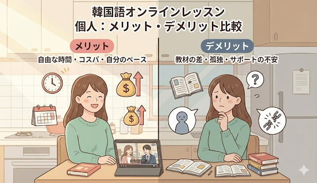 韓国語オンラインレッスン 個人で受けるメリット・デメリットを比較