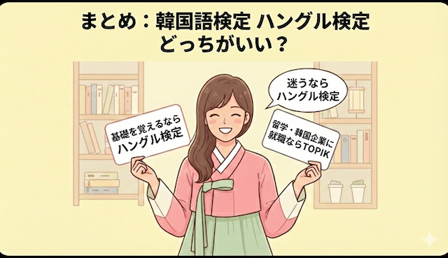 まとめ:結局韓国語検定 ハングル検定 どっちがいいか迷ったときの結論
